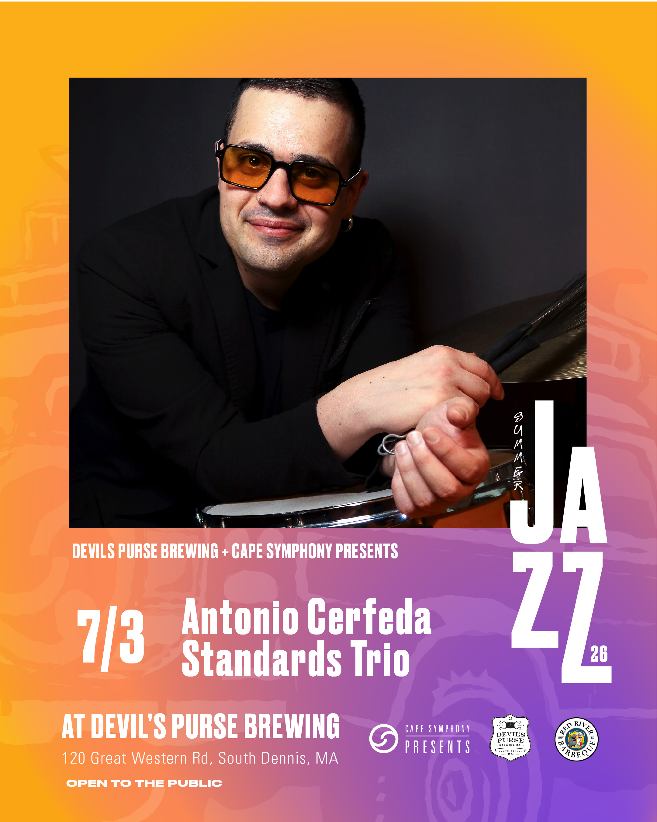 join us on July 3rd from 5-8pm, Devil's Purse will be serving up Beer, BBQ and Jazz! Friday nights will feature a rotating cast of Jazz artists, Harwichport legends Red River BBQ, and a wide array of your favorite Devil's Purse brews! All events are free and open to the public.